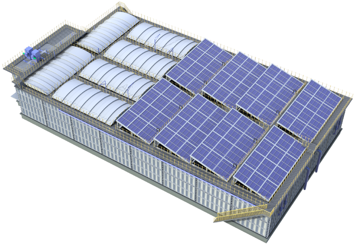 省錢、省事、省力、省心——華騏環(huán)保Sup-ASS模塊化裝配式水廠正以一種極簡的方式逐步顛覆傳統(tǒng)的污水廠鋼砼結(jié)構(gòu)非標(biāo)準(zhǔn)化的建造模式。Sup-ASS裝配式水廠采用標(biāo)準(zhǔn)化鋼制模塊預(yù)制拼裝,結(jié)構(gòu)優(yōu)化模擬,智能化流水線生產(chǎn),使預(yù)制模塊高度標(biāo)準(zhǔn)化、精度高、拼裝靈活。預(yù)制模塊系自動模壓波紋板模塊,平頂正弦波波形,相對于梯形或矩形結(jié)構(gòu),它的結(jié)構(gòu)更穩(wěn)定、強度更高、材料更省,因此較之混凝土構(gòu)筑物的造價更有優(yōu)勢。Sup-ASS裝配式水廠運輸及施工方便靈活,不受運輸尺寸、構(gòu)筑物體積、污水處理工藝的限制,可以像積木一樣根據(jù)項目的實際需求進行自由的組合;Sup-ASS裝配式水廠所有模塊由螺栓與鎖扣緊固連接、拆裝方便,可重復(fù)使用,即使遇到規(guī)劃調(diào)整的情況,整廠亦可拆卸搬遷,循環(huán)使用率可達(dá)100%;Sup-ASS裝配式水廠工期較之傳統(tǒng)水廠可縮短70%左右,比如,日處理量5萬噸的傳統(tǒng)鋼砼結(jié)構(gòu)水廠建設(shè)周期至少需要一年左右的時間,而Sup-ASS無需焊接,螺栓拼裝,僅三個月便可完工通水。Sup-ASS裝配式水廠標(biāo)準(zhǔn)化設(shè)計、智造的生產(chǎn)方式,單元模塊化拼裝方式,使施工全過程無污染真正做到綠色低碳,契合30、60碳達(dá)峰碳中和目標(biāo),實現(xiàn)傳統(tǒng)環(huán)保工程模式的顛覆。