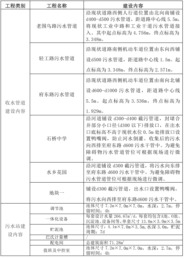 本項目為新建污水處理站一座,規(guī)模為800t/d。新建污水管網3.52公里。建設項目工程組成見表1。