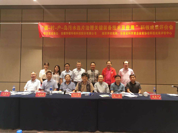 5月26日下午,安徽省科學家企業(yè)家協會科技成果評價中心組織專家對由安徽華騏環(huán)??萍脊煞萦邢薰就瓿傻摹爸悄芑?zhèn)村戶污水治理關鍵技術裝備與應用”項目科技成果進行評價。評價會由中科院安徽光學精密機械研究所研究員劉文清院士任評價委員會主任、中國科學技術大學教授劉桂建任副主任、評價專家成員有安徽大學教授石先陽、合肥工業(yè)大學教授崔康平、安徽理工大學教授高良敏、合肥學院教授吳克、安徽省環(huán)境科學研究院高級工程師孫雷。